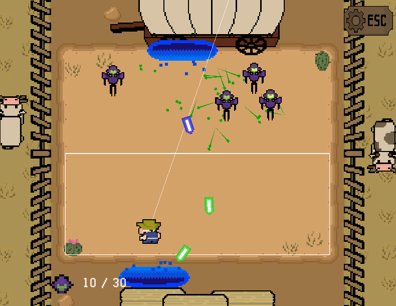The title is a bit tongue-in-cheek, as we made our protagonist a cow cowboy (cowgirl?). We decided that we didn’t want a clear gender for the protagonist nor the aliens, as that wasn’t a very important part of the identity nor the aesthetic.